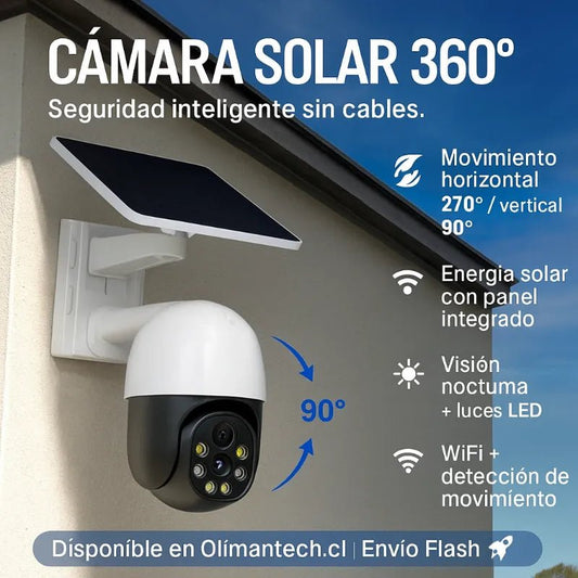 Cámara Solar 360° WiFi con Visión Nocturna y Control App