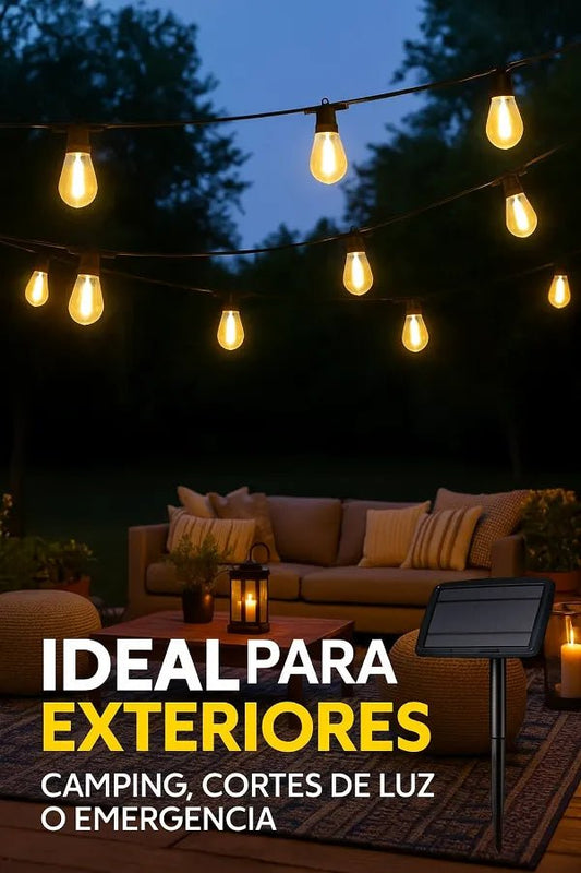 Guirnalda Solar LED 10 Metros con 10 Ampolletas de Luz Cálida para Exterior