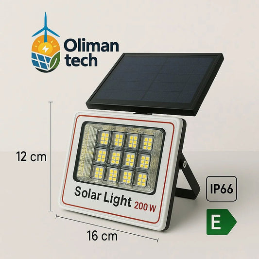Proveedor:OlimantechFoco Solar LED 200W con Panel Solar y Batería – Iluminación Autónoma para Exteriores | Olimantech